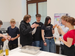 Během dne jsme se dozvěděli zajímavosti o symbolice tradičního korejského oděvu HANBOK a vyzkoušeli si psaní vlastních jmen v korejském písmu HANGUL. V laboratoři materiální kultury jsme se věnovali fermentaci – konkrétně rýže a nápoje kombucha – a nechyběla ani ochutnávka.