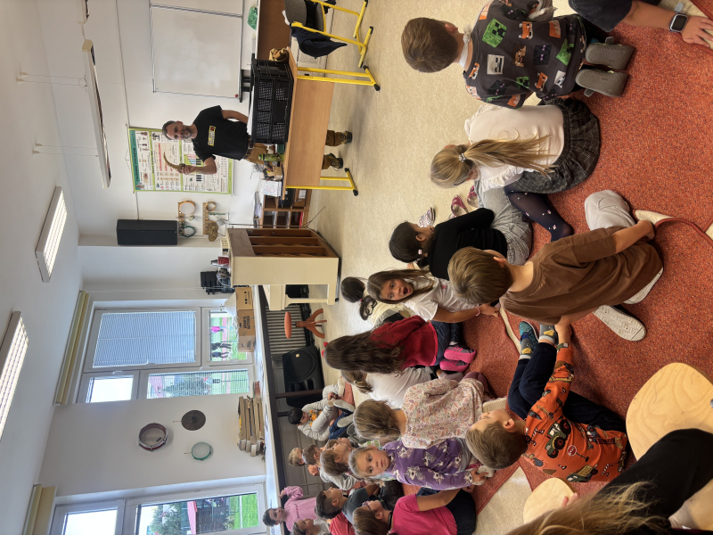 Naší družinku navštívil známý český paleontolog Štěpán Rak, svým vzdělávacím programem žáky provedl historií dinosaurů. Přivezl dětem unikátní kousky :zub Spinosaura, Veloceraptora, T- Rexe, dráp Giganotosaura, čelist Tiranosaura a zkamenělinu dinosauřího vejce.Žáci mohli názorně vidět velikost dinosaurus X člověk. Někteří fanoušci těchto gigantů měli pro pana Raka přichystané velice zajímavé dotazy.