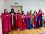 Velký úspěch měla také kreativní část programu, při které jsme si vyrobili tradiční japonské ozdobné uzly MIZUHIKI symbolizující štěstí. Seznámili jsme se rovněž se základy japonského písma HIRAGANA a vyzkoušeli si jeho psaní.