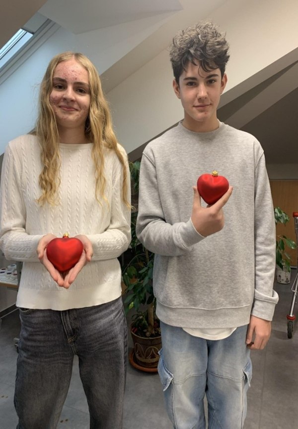 Jako kolektiv, jsme za pomocí naší paní asistentky, objednali dvě baňky ve tvaru srdce.